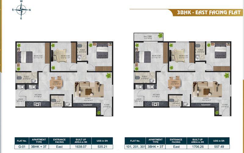 - Type 2, 3 BHK